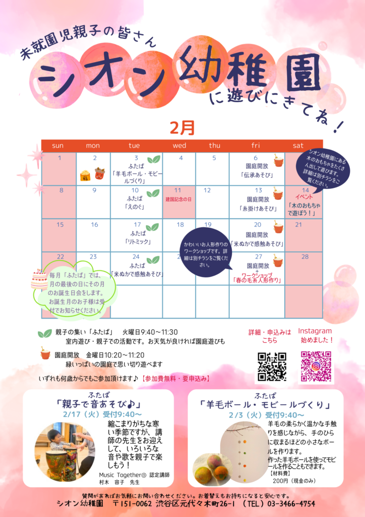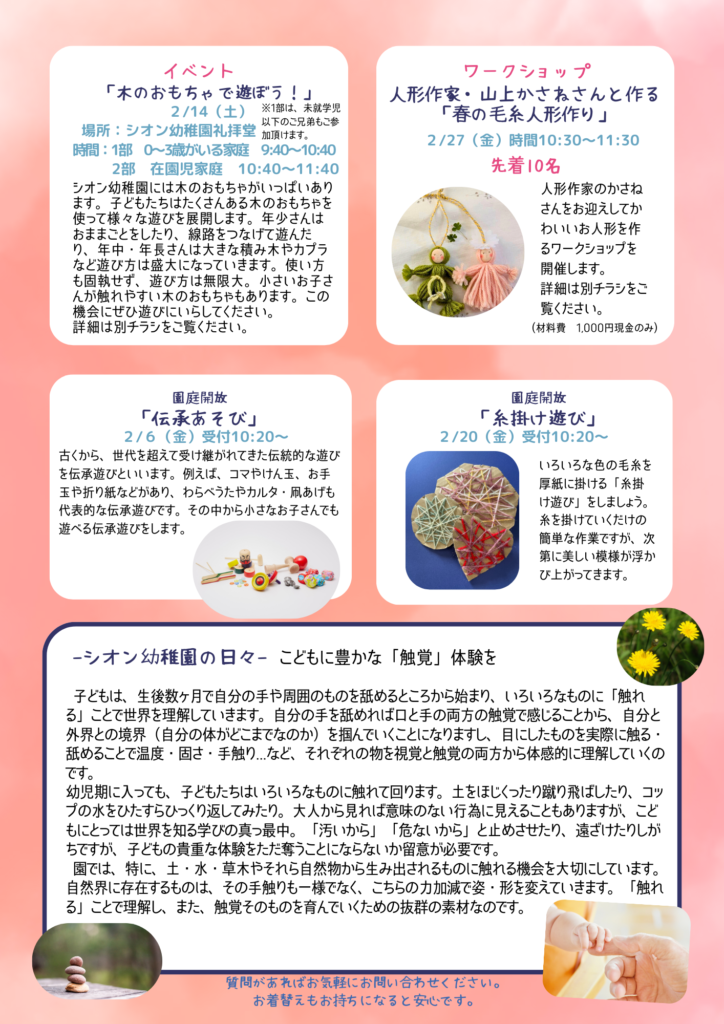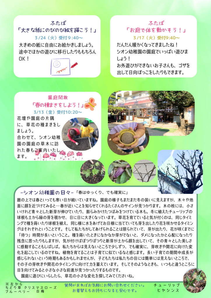 ~未就園児のつどい「ふたば」 2-3月の予定~